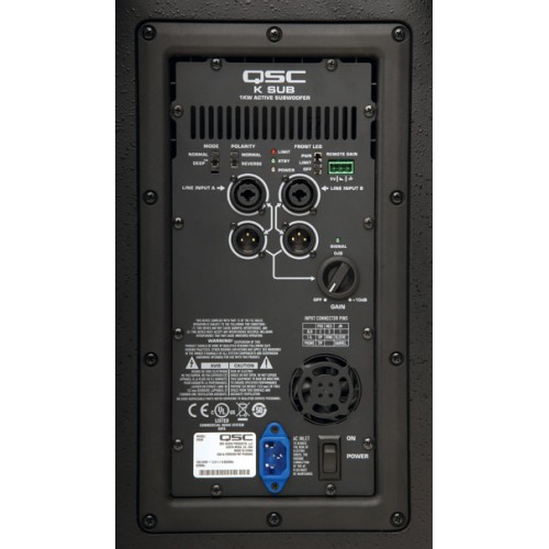 | Connectors | Dual balanced female XLR/¼" line level input, Dual Balanced male XLR full range line level out, Remote gain control, Locking IEC power connector |